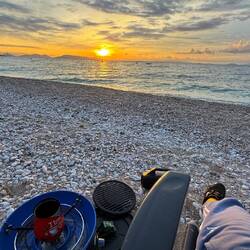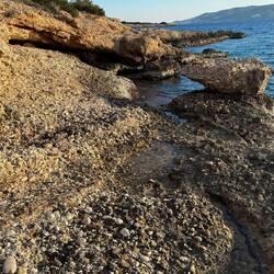 Am nächsten Tag saß ich etwas am Hafen und habe mir ein Hörbuch angehört und ging anschließend auf die angrenzende Halbinsel zum Geocachen. Das ist das eigentlich Highligh von Porto Heli, hier muss man hin! Natur pur, traumhafte und verlassene Steinstrände und Klippen. Ich war 6 Stunden unterwegs und bin die halbe Halbinsel an den Klippen abgelatscht, dabei habe ich 2 Leute getroffen. Eine Tochter von scheinbar Superreichen, die ihr Grundstück mit eigenem Strand inkl. Superyacht hatten und einen deutschen Mann auf einem Klappstuhl mit T4 VW hinter den Büschen mit Kennzeichen aus Jena.