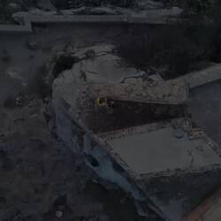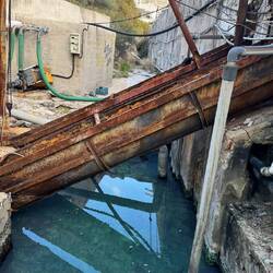 Mit der Taschenlampe ging es los um das Gebiet zu erkunden, wobei der Fokus natürlich auf dem von meinem Kumpel Kevin geschickten Lost Place Schiff lag. Bei Dunkelheit kann man vieles nur erahnen, aber es ist direkt sehr beeindruckend. Nachdem ich aus der Ferne nur Umrisse erkennen konnte, sah ich mir noch die „Αγ. Νικόλαος“ Kirche und die angrenzende „Villa Euftaxia“ (Βίλλα Ευταξία), ebenfalls ein LP, an. Ich suchte nach einem Weg doch noch mit dem Camper in die Straßen zu kommen, aber ich hätte nur über die ehemalige Schienentrasse der LP Mine fahren können, was mir zu heikel war. Auf dem Rückweg zum Camper traf ich noch zahlreiche Hunde und ein paar Welpen. Die Nacht war direkt an der Hauptverkehrsstraße etwas wild, aber es war es wert, da ich direkt morgen los konnte. Zuerst zum Schiff, dann einen Cache in der nicht weit entfernten und verlassenen Mine bergen. Es gibt einige Tunnel, wobei ich in einem erinnerst und später erst herausgefunden haben, dass diese alle als lebensgefährlich deklariert sind. Zurück am Camper erst einmal frühstücken und dann die Entscheidung, ich schwimme auf das Schiff 😂😂