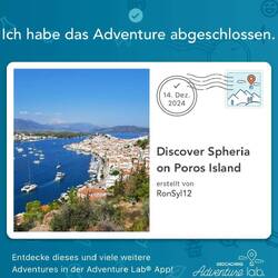 Nach dem Megaerlebnis der Peristeri Höhle fasste ich den Entschluss nach Poros zu übersetzen, also auf geht‘s! Nach der Überfahrt von Galatas für 1,30€ bin ich vom Hafen direkt an den höchsten Punkt von Poros gelaufen, Mylos, die alte Windmühle. Wer hätte es gedacht, nur wegen einem Geocache überhaupt dorthin gelaufen. Die Windmühle hochzuklettern hatte mich aber schon etwas Überwindung gekostet, da das erste Stockwerk eigentlich nicht mehr vorhanden war und nur an 4 Holzbalken im alten Gemäuer eingingt. Egal, no risk, no life und so konnte ich den höchsten Punkt besichtigen und eine tolle Aussicht genießen und ein Droni machen. Anschliessend ging es mit einer tollen Adventure Lab Tour weiter. Dabei ging es von Mylos etwas bergab zur heilige Kirche Agios Athanasios. Nach einem tollen Blick auf den Hafen von Poros und einer 5-minütigen Pause neben einer alten Griechin auf einer Bank ging es weiter durch die Natur zur 110 Jahre alten Kirche von Agioi Anargyroi an den südöstlichen Teil der Insel. Lustig, dass ich bei dem Panoramablick von hier neben 2 anderen Inseln auch Hydra / Idra sehen konnte 😇.