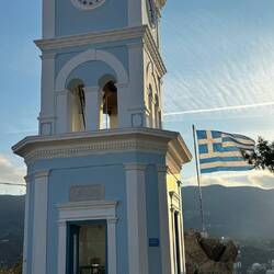 Zurück durch die schöne Natur ging etwas bergab zur Promenade von Spheria und zum Heldenplatz. Kurz für 50 Cent die Wasserversorgung sichergestellt und mit einem erneuten Aufstieg zum Wahrzeichen von Poros, dem ROLOI, dem echt wunderschönen Glockenturm. Aber seht doch selbst!