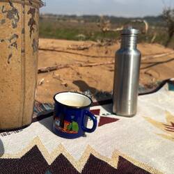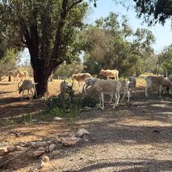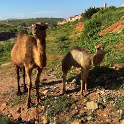 Es mampft genüsslich die Körner, während das Kleine versucht, irgendetwas aus den Zitzen der Mutter zu saugen. Der Opa kommt stellt sich neben mich und erzählt fröhlich auf arabisch und ich verstehe kein Wort! 🤣🤣