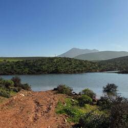 Bei der Anfahrt auf Arbâa Mesti sehe ich zu meiner Linken einen See und eine Bande Jugendlicher, die dort ihren Badespaß hat. Das bedeutet, dass ich da auch kurz reinhüpfen kann. Den Chälli fahre ich durch das Dorf und dann links über einen Acker, wo ich am Ende schon auf die Trockene Rückseite des Staudamms schaue. Also wieder ein Stück zurück und in der Mitte des Dorfes nochmals einbiegen. In die Straße hatte ich eh schon verdächtig reingeschaut und das erste Bauchgefühl ist ja bekanntlich…ja, ja! 🤣🤣