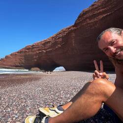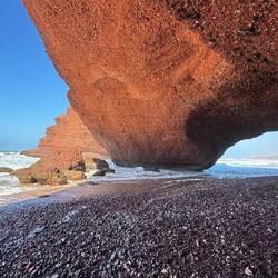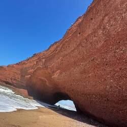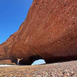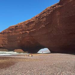 Der Strand von Legzira ist ein Beispiel für eine sogenannte „Boutonnière" (Knopfloch): eine durch Erosion entstandene Vertiefung, die den Zugang zu alten geologischen Schichten ermöglicht. Das erste Mal in meinem Leben befinde ich mich an einer solchen Stelle auf unserer Mutter Erde 🌍 😳😁🫶❤️💫✊💪👏