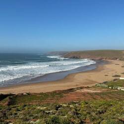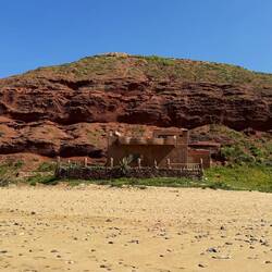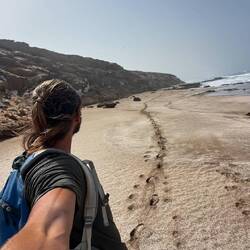 Demütig gehe ich weiter, passiere einige Leute, mache noch Fotos von der anderen Seite und ziehe meines Weges den Strand entlang. Ich passiere das Camp, ein altes Steinhaus, die Surffschule und dann zieht sich hinter der nächsten Ecke vom Cliff der untere Restaurant- und Touriteil von Lezira. Völlig in meinem Zen schaue ich umher und gucke auf eine Speisetafel, was gleich jemand zum Anlass nimmt und angeglotzt kommt, um mir Essen schmackhaft zu machen. Ich winke ab, da ich völlig woanders bin.