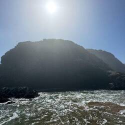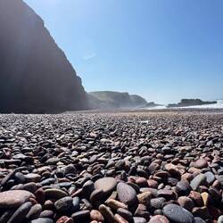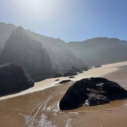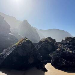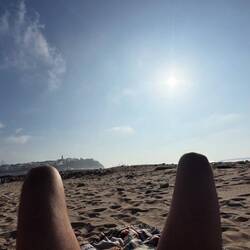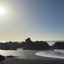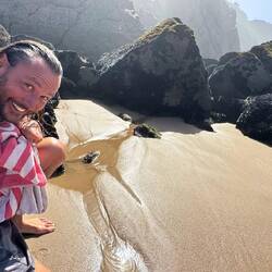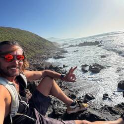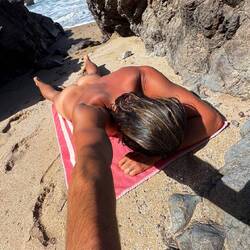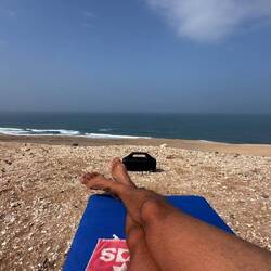 Nun ist mal eine Sonnen-Chill-Pause in der herrlichen Kulisse angesagt und ich lege mich mit nacktem Oberkörper auf die Pepples. Obwohl ich ja vorher schon rund 15 Minuten da saß, kommt nach 1 Minute eine Welle und ich liege komplett im Wasser! 🤣🤣 -> das mir das nach all den Jahren am Meer doch nochmals passiert?! 🤣🤣