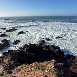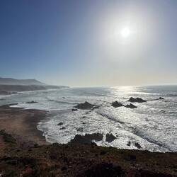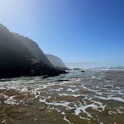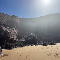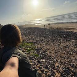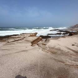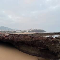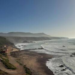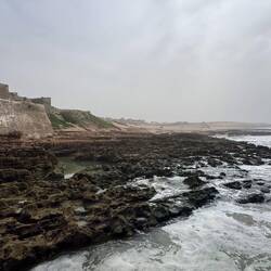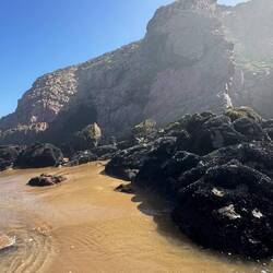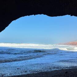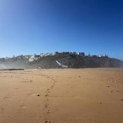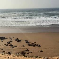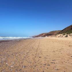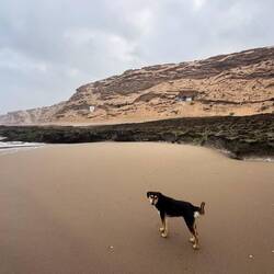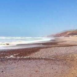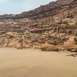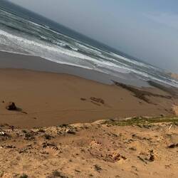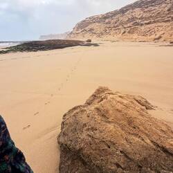 Ich gehe etwas weiter über die wunderschönen Muschelstränden, bis zu einer kleinen Bucht, an der ich mich entscheide ein Bad zu nehmen. Dies klappt wunderbar, als ich mich jedoch wieder anziehe und um um das nächste Cliff zu laufen, erwischt mich eine Welle und ich bin komplett nass! Das passiert mir jetzt schon das zweite Mal in Marokko. Die See ist einfach unberechenbar hier.
