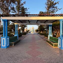 Es geht die Straße entlang, rechts rein, vorbei an dem wunderschönen Kongresspalast und dem gegenüberliegenden Mechouar-Platz, wie ich nach einer Recherche herausfinde. Auf Googlemaps ist der atemberaubende Platz nur auf arabisch zu finden.