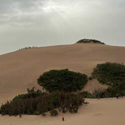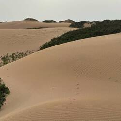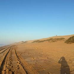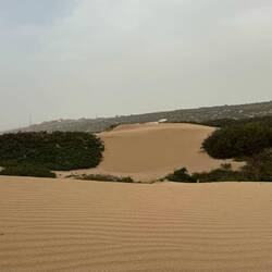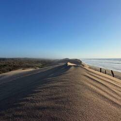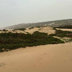 Nachdem erledigten Geschäft geht den wirklich schönen Strand weiter bis zu einem hohen Zaun, der vor einer frequentierten Straße liegt und mir nur die Möglichkeit des Rückwegs oder der Durchquerung der üppigen Dünen zu meiner Linken lässt. Ich entscheide mich für die Dünen!