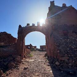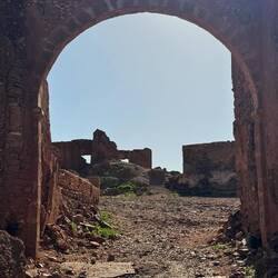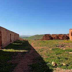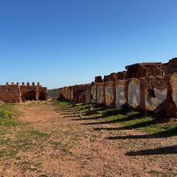 Auch diese steige ich noch leicht widerwillig auf, bis mich oben eine süße, kleine und gestreifte Katze erwartet. Sie ist zutraulich und schmust gerne mit mir. Unter einem Mauz mauz passiere ich das Eisentor in den Innenbereich des „was auch immer es mal war oder ist“, das weiß man ja hier in Marokko teilweise nicht so genau. Wird es noch benutzt oder ist es schon ein LP (Lost Place). 🤣