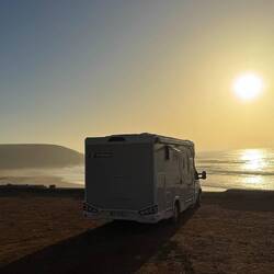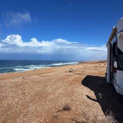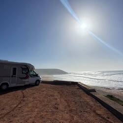 Nachdem ich morgens nochmals mein großes Verdunklungsrollo gespannt und den Sonnenaufgang genossen habe, fahren wir gemeinsam von unserem Platz weg, an dem wir nun doch ganze 5 Tage gestanden sind. Für mich ein neuer Marokkorekord, haha 😜