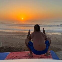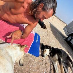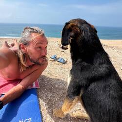 Als ich mir die Yogamatte auspacke, um Aspekt zu machen legen sich 3 der 4 Hunde im Halbkreis um mich. Die jüngere Hundedame legt ihren Kopf sogar auf die Yogamatte, als wolle sie ganz bewusst die Energiebrücke aufrecht erhalten, zu süß. Immer wieder kraule ich die Tiere und sie genießen es sichtlich.