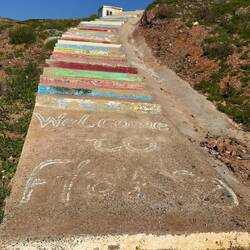 Ziemlich schlafbenommen wackele ich vorbei an dem Restaurant einige Treppen hinauf, die meinen Körper fordern. Ich schaue auf das Handy, in welche Richtung der Cache Nr. GC7MYC8. Auf dem Weg dahin entdecke ich auch endlich die mörderische Treppe, von der ich schon irgendwo gelesen hatte. 🤣👌*