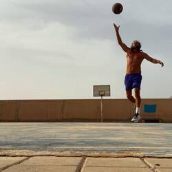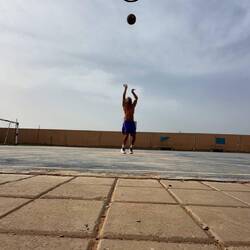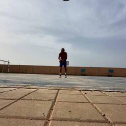 Ich räume die Yogamatte und das Handtuch weg und gehe erst einmal nach drinnen. Dort setze ich mich auf die Bank und ich sehe einfach, wie Abdoallah die ganze Zeit mit seinem Moped von rechts nach links fährt um Männer vom Militär durch die Gehend zu befördern.