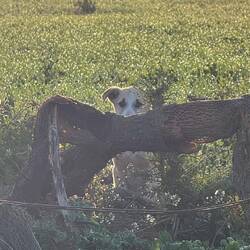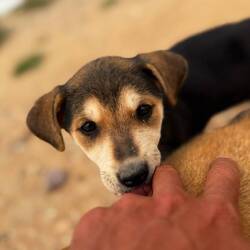 Ich inspizieren die typischen Ecken etc., irgendwo muss der scheiß Cache ja sein! Dann steht urplötzlich ein junger Schäferhund neben mir, der wohl auch unbedingt gekuschelt werden möchte. Gesagt, getan!