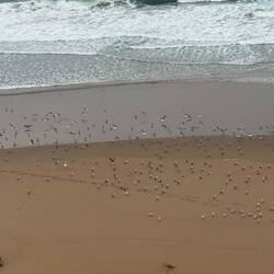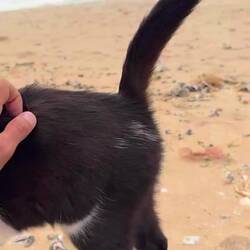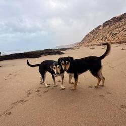 Wir spazieren am Strand, bis wir zwei anderen Hunden begegnen, wo ich dann auch den jüngeren zurück lasse, nachdem sich die Mutter schon vorher geweigert hatte weiter mitzugehen.