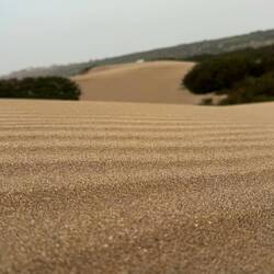 Die Fahrt von El Marsa nach El Aiún passiert zügig und unproblematisch. Interessiert genieße ich die sandige Landschaft samt der Dünen, die an mir vorbeiziehen.