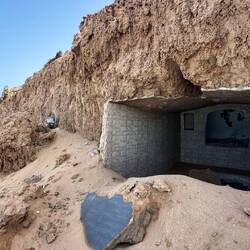 Ich stelle den Chälli gut ab und gehe mit Badehose bewaffnet das Cliff herunter zu den Höhlenwohnungen nach rechts weg. Direkt zieht es mich ins 4-5 unterschiedliche Wohnungen, die mich begeistern. Die Leite haben die teilweise so schön eingerichtet, eine Schande, dass das Erdbeben 2023 alles zerstört hat! 🙈