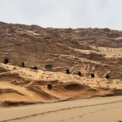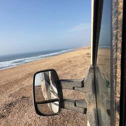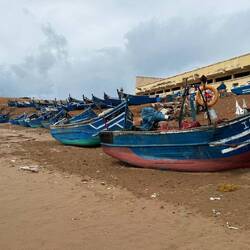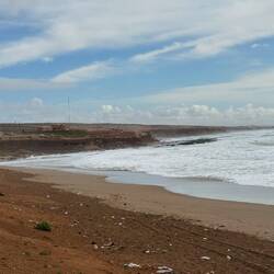 Die Fahrt vom letzten Spot nach Tifnit hat es in sich. Trotz widriger Wetterbedingungen entscheide ich mich, den Sandweg komplett an der Küste entlang zu nehmen und das ohne mich wirklich festzufahren. Nur 1x ist eine Düne zu hoch und es regnet zu stark, als dass er der Chälli mit seinem Frontantrieb und komplett abgefahrenen Vorderreifen schaffen könnte.