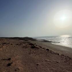 Im trottenden Schritt geht es den riesigen Strand Richtung El Marsa entlang. Dabei finde ich Muscheln am Strand, die ich so noch nie gesehen habe. Ich beschließe einige mitzunehmen, um sie unterwegs nochmals gegen schönere Exemplare auszutauschen.