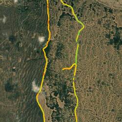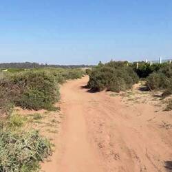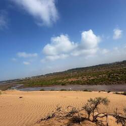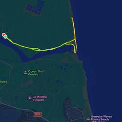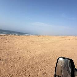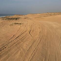 Ich fahre von Sidi Wassay nach Sidi R‘bat und komme auf eine unbefestigte Sandtrasse, die ich am Hafen vorbei bis zu dem hier markierten Punkt fahre.