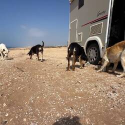 Ich genieße den Spaziergang und mache noch einige Bilder vom Strand und als ich am Challenger ankomme, wartet schon die Hundebande auf mich ist ja eh klar sie wollen wahrscheinlich mehr zu essen. Zusammen verbringen wir einen sehr chilligen Tag, der anfangs noch sehr bedeckt und am Nachmittag sehr sonnig ist. Ich nehme immer wieder einen Nacktsonnenbad und die Hunde genießen ihre Zeit. Sie sind bestens versorgt, als ich Ihnen nochmals eine große Portion Reis koche, wovon wirklich alle vier Hunde fressen können. Ich stelle Ihnen 4 verteilte Portionen hin, damit nicht wieder das Gezanke losgeht. Wasser ist sowieso kredenzt.