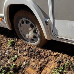 Nun gut, dann eben der Versuch drum herum zu fahren. Kevin fährt vor, nur im Fall der Fälle, dass er mich mit seinem Truck rausziehen muss.
