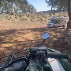 Kevin mit seinem Quad macht den Unterschied. Mit der 700Kg belastbaren Seilwinde vorne und dem Spanngurr hinten an 2 unterschiedlichen Bäumen zieht er mich quasi raus. Eine Aktion, die ich so oder so nicht nochmals brauche. Ich bin einfach dankbar mit Unterstützung da rausgekommen zu sein.