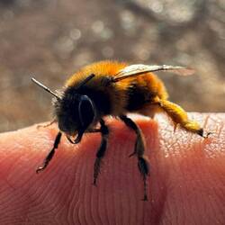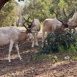 Das eine Muttertier auf der Ebene über mir kommt zu mir runter und es wird mir leicht anders, bei dem großen wackeligen Tier, was so nah kommt. Ich gehe lieber zwei Schritte zurück! Irgendwie schaukelt das Tier an mir vorbei, stellt sich neben mich und frisst da weiter. Ich gehe vorsichtig näher und reiche meine Hand hin, da ich es schnuppern lassen möchte, was auch funktioniert. Es schnauft ganz schön und dabei kommt auch ein guter Schwall Geruch von dem Tier zu mir rüber, Marke Iltis. Ich stehe einfach nur so weiter da und mein Blick schweift immer zwischen den beiden 2er Gruppen.