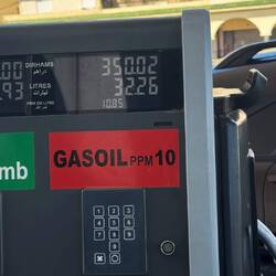 Der Tankwart mach den Diesel voll. 32,26L für 350,02 Dirham, was exakt 32,26 Euro entspricht, also 1€ pro Liter! Hier hat sich am Dieselpreis also gleich 0,0 verändert! 🤣🤣