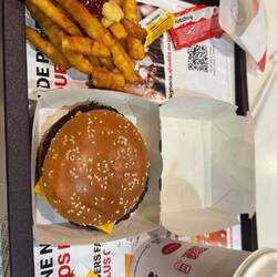 Ich begebe mich in den MCD, gehe erst einmal pissen und mir die Hände waschen. Dann bestelle ich an einem dieser bescheuerten Bildschirme für 61 MAD, was 5,65€ entspricht, ein ganzes Royal Menu, was derart unterirdisch schmeckt, dass ich noch am selben Tag beschließe, dass ich 1. diesem Drecks-MCD eine fiese Negativbewertung gebe und ab jetzt jedes Mal 100€ an eine gemeinnützige Einrichtungen spende, wenn ich nochmals wieder nach McDonald‘s oder Burger King gehe!