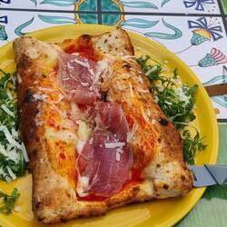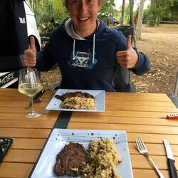 Zum Abendessen geht's ins Restaurant am Campingplatz. Gibt natürlich Pizza was sonst 😁
