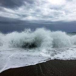 Regentag... daher gibt es nicht viel außer einen ausgiebigen Spaziergang am Strand zum Torre di Bari in der Regenpause.