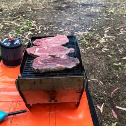Zum Abschluss des Tages holen wir unseren Scotti raus und grillen uns ein saftiges Steak. Ergänzt wird das Gericht mit einem cremigen Risotto.