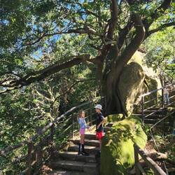 We woke up to a beautiful sunny morning but everyone for some reason was still wearing full winter clothes. We took a bus to Elephant Mountain. Mum and dad said there was 600 steps but I challengedLæs mere