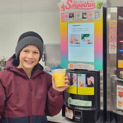 We have a tradition of chicken karage for breakfast from our favourite spot near our house- the best! Also at 7-11 we make our own smoothies, so much fun!!