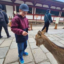 We went to Nara today and when we arrived we hopped on a bus and went to the Nara Deer Park. There were lots of deers- I reckon there were 1000-1500 of them. When you are at the park you are allowedRead more