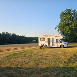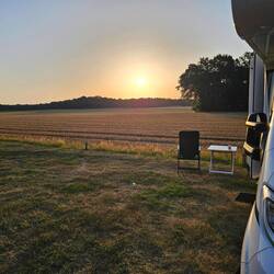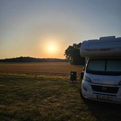 In Steinfeld an einem Kutschenmuseum verabschieden wir den echt heißen Tag. Für 3-4 autarke Mobile bietet der Stellplatz herrliche Ruhe ( Kostet 10€ ohne alles).