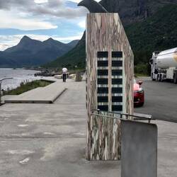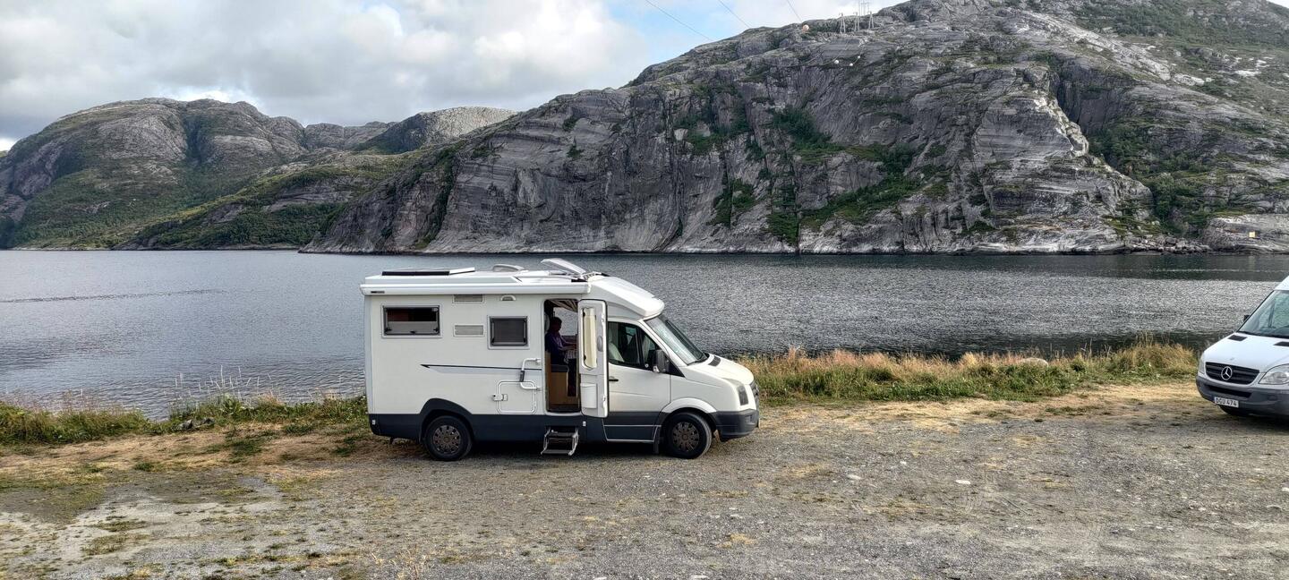 Heute Vormittag sind wir von Ronny's Unterkunft wieder weiter auf der Küstenstraße 17 gefahren, durch viele Tunnel, rechts und links hohe Berge und Wasser. Es ist eine schöne Landschaft und dieLæs mere