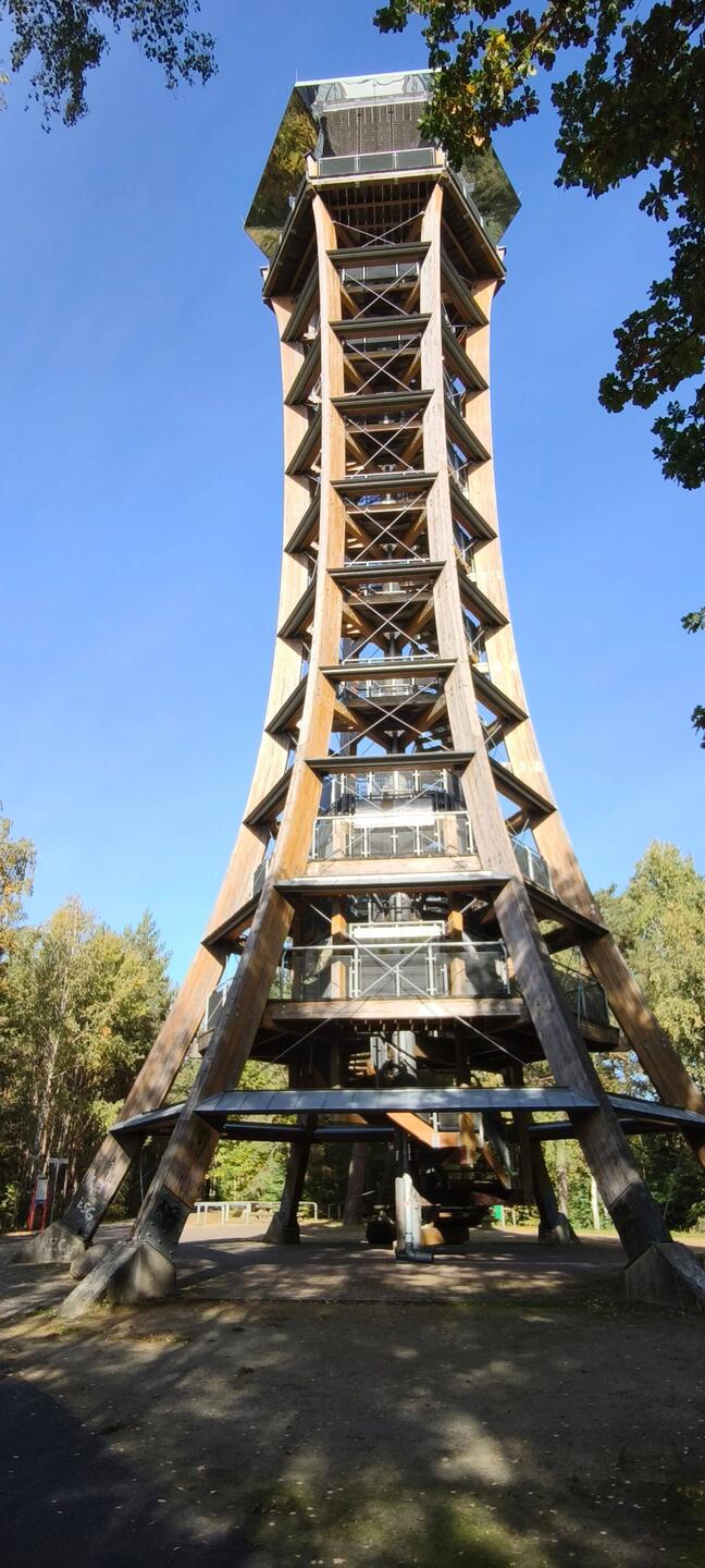Gegen 11:30 Uhr war Start in Mexiko bei immer noch 6,5 Grad und einer steifen Briese Gegenwind. Vorbei am Felixsee mit seinem markanten Aussichtsturm.