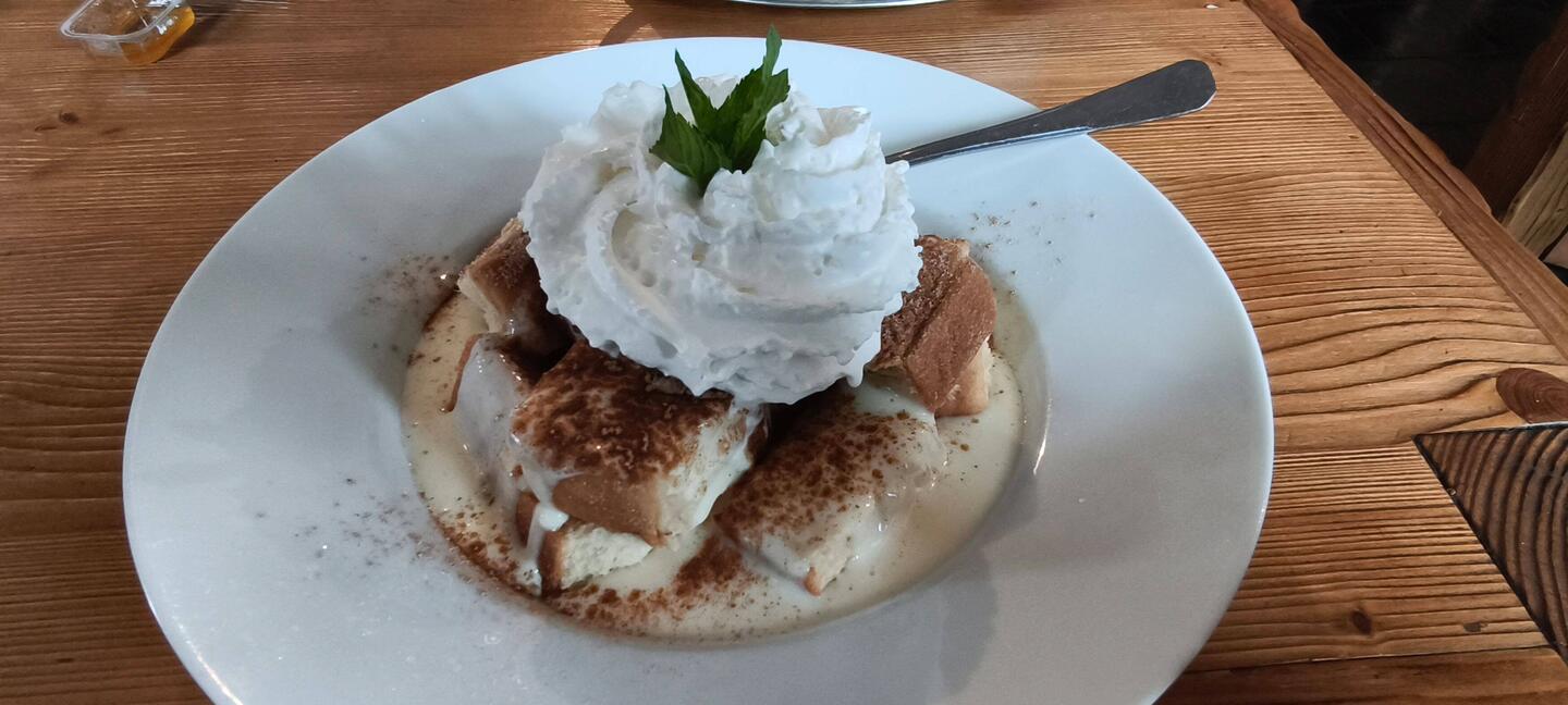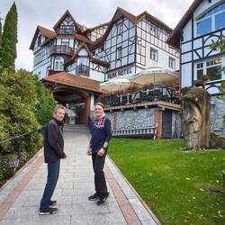 Ankunft in unserer Unterkunft, der Pension Happy, mit tollem Frühstück bei Kaminfeuer.