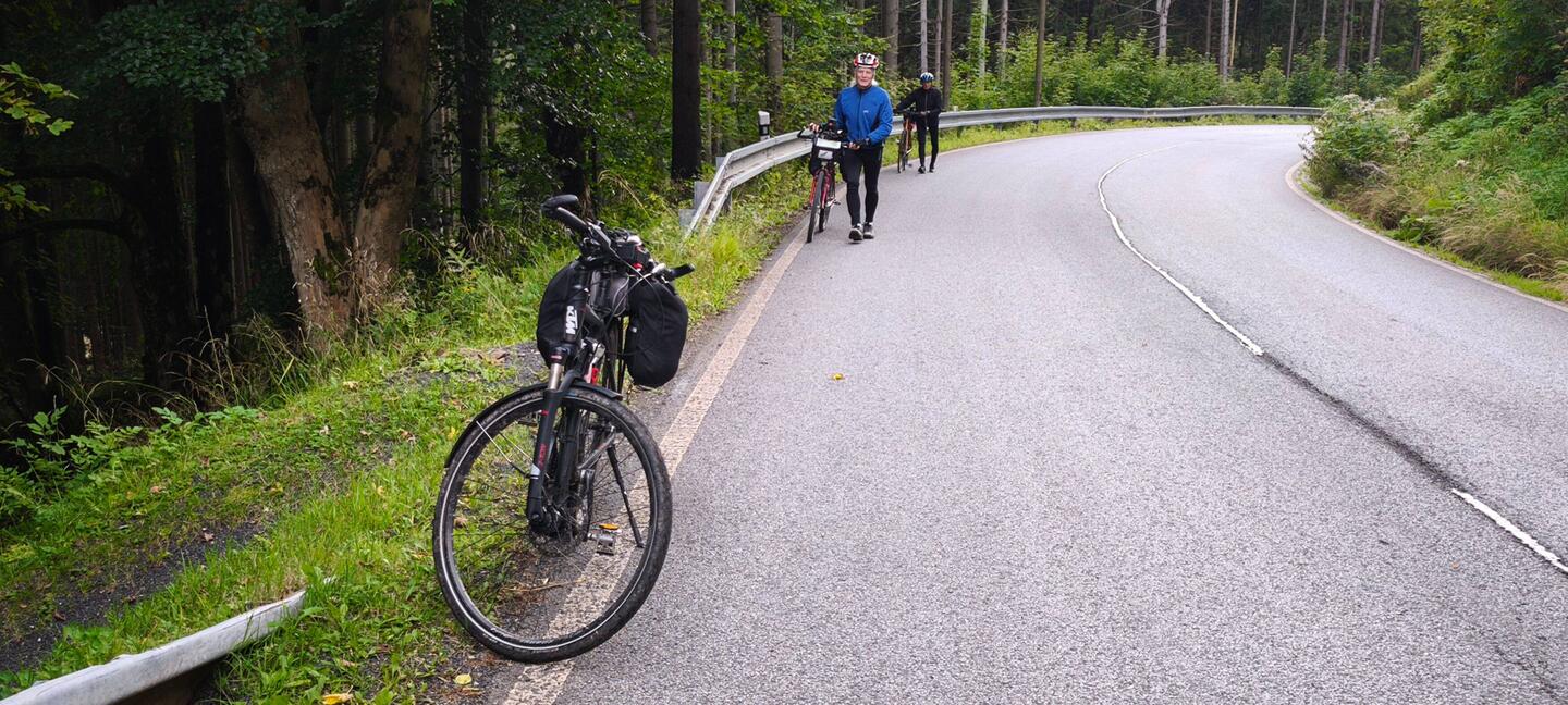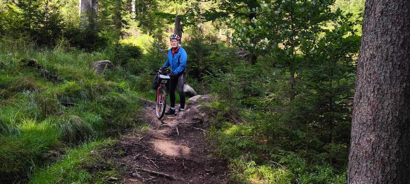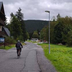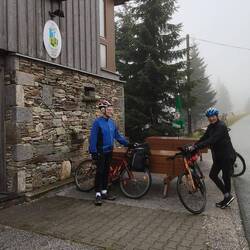 Das eigentliche Tagesziel sollte die Waldbaude am Schwarzenberg sein. Leider bremsten uns die wiederholten Regenschauer und die Streckenführung mit mehreren Radwanderungen aus.