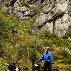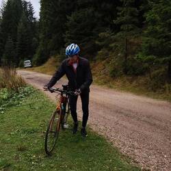 Ca. 12 km lange Abfahrt zum Bahnhof von Hirschberg ohne treten zu müssen. Aber das ging leider auch auf die Bremsen.
