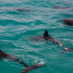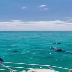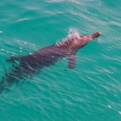 Ein weiteres Highlight sind die Delfine, die sehr nah an unser Boot kommen. Wir sehen Bottlenose und Australien Humpback Dolphins.
