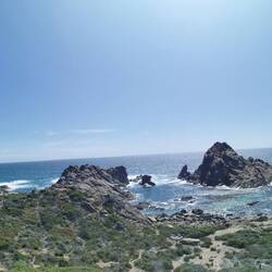 Zum Entspannen fahren wir zum Injidup Natural Spa, dort kann man sich in einen kleinen Pool unterhalb eines Felsens setzen und wenn eine groß genuge Welle kommt, sprudelt das Wasser hinunter, wodurchMeer informatie