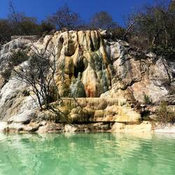 A dos horas y algo de Oaxaca se visita Hierve el agua, zona de cascadas de minerales y gracias a la corriente del subsuelo se crea un efecto que parece justamente que el agua este hirviendo.