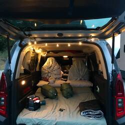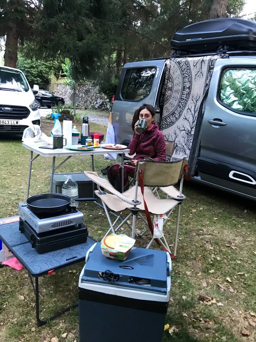 Nos acampamos en el camping para 15€ la noche en total, dueño muy amable y pradera con césped.