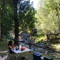 Primer día en Espot en el camping Sol Y Neu, después de haber visto Voraparc, la mola y rio gelat, decidimos de quedarnos aquí al lado del río. 34 € la noche en total.