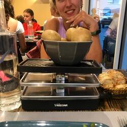 Cenamos una Raclette buenísima en este día de lluvia.