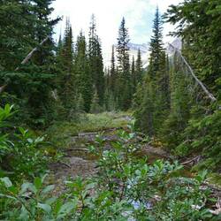 Einige hundert Meter neben dem Takakkaw Fall steht der Wegweiser zum Yoho Lake, nur 3km/400 Höhenmeter soll dieser entfernt sein. Ich habe Lust zum wandern und mache mich auf den Weg.