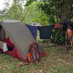 Keine Ruhe gibt's jedoch von der täglichen (Schönwetter-) Ankommroutine: Zelt aufbauen. Duschen. Wäsche waschen.Read more